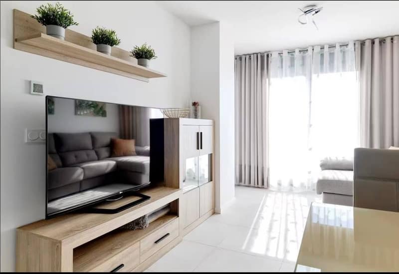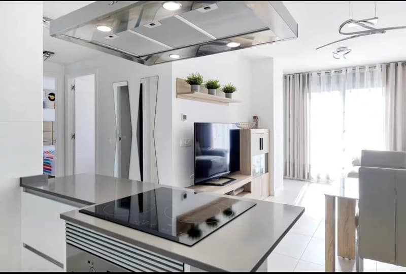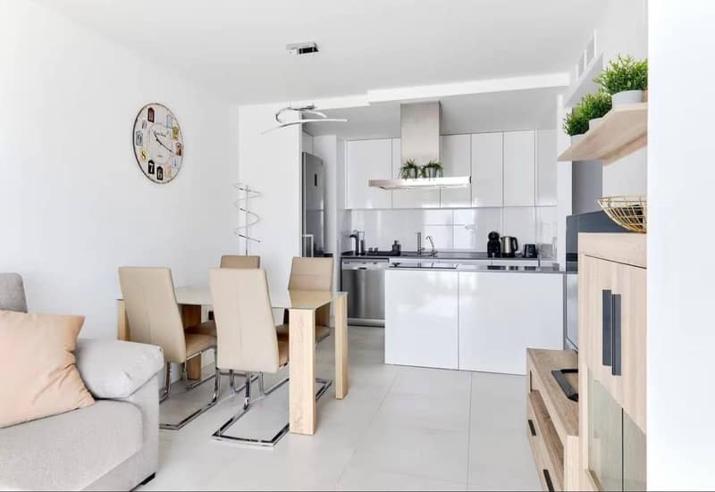 Modern apartment for sale in Residencial Garda, Mil Palmeras. Located in a quiet residential area with everything needed for comfortable living nearby, including a supermarket, pharmacy, restaurants, cafés, bus stops, and taxi access. Mil Palmeras beach is within easy reach — a wide, clean Blue Flag beach with no stones. This is a new apartment, fully equipped for comfortable living. It features 2 bedrooms, 2 bathrooms, a living room with an open-plan kitchen, and a large 50 m2 terrace, perfect for sunbathing, relaxing, or spending time with family. The property also includes a utility/laundry room with a washing machine, an underground parking space, and access to the communal pool area. According to the available information, the property has a licence. Details Residencial Garda, Mil Palmeras 2 bedrooms 2 bathrooms 50 m2 terrace Living room with kitchen Utility / laundry room Underground parking space Communal pool Licence available